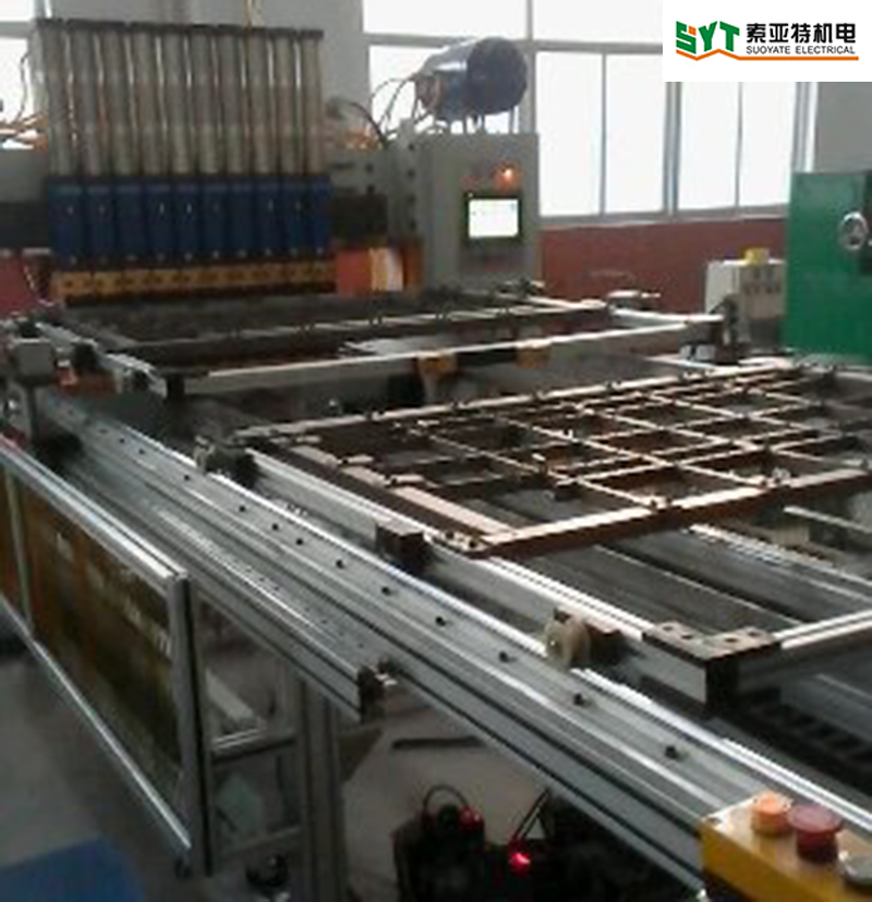 采用加強(qiáng)化特別設(shè)計(jì)鋼構(gòu)機(jī)身,懸臂式結(jié)構(gòu),根據(jù)產(chǎn)品要求設(shè)計(jì)12組焊接機(jī)頭,焊接位有效寬度1800mm,重心合理確保機(jī)身在高速焊接生產(chǎn)時(shí)機(jī)構(gòu)提供受力支撐點(diǎn)及工作平臺(tái)。焊接采用雙電源多頭焊接;兩套焊接電源,雙模往返式多頭焊接專(zhuān)機(jī),雙模采用一邊焊接一邊裝料到模上去,焊接完成模也安裝好,節(jié)約用時(shí)。