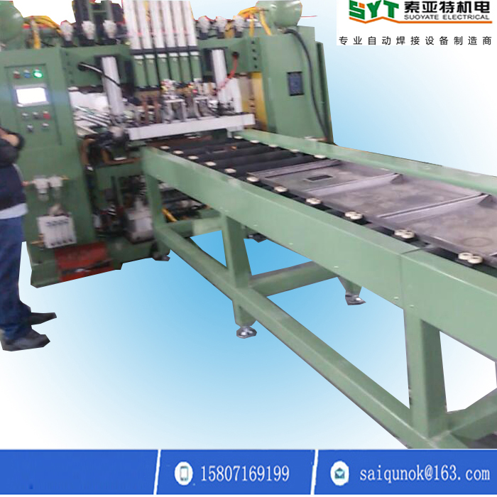 龍門式多點焊機接專機由龍門式機架、雙中頻逆變焊接變壓器、氣動傳動裝置、伺服電動機輸送線體、電氣控制系統(tǒng)、冷卻系統(tǒng)、PLC觸摸屏操作系統(tǒng)控制系統(tǒng)。